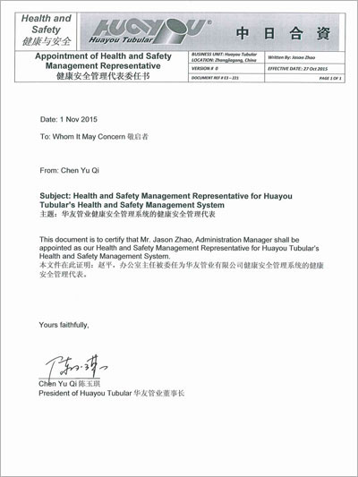 华友管业健康与安全介绍